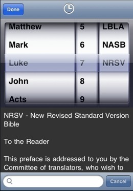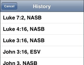Furthermore, you can see your browsing history in the new History list. Just tap the clock icon when picking a reference to see the last several chapters you’ve read.